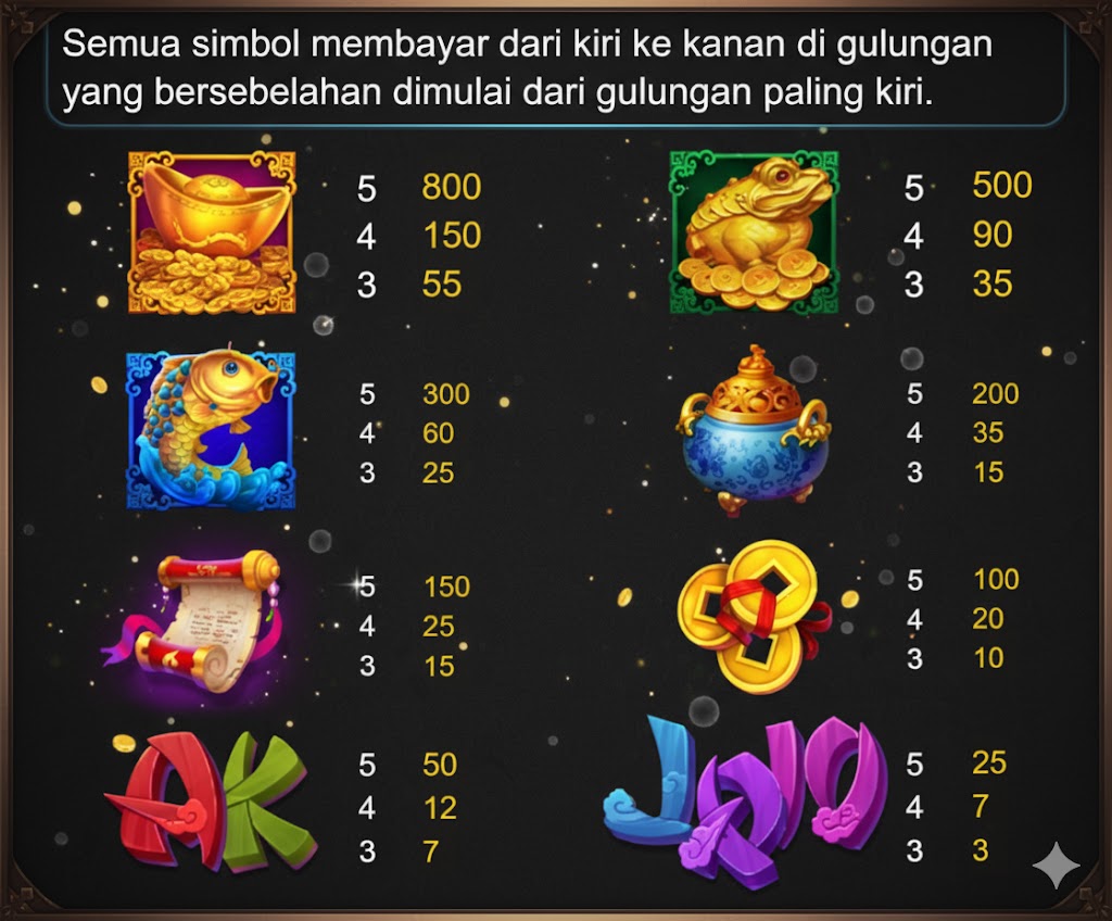 3. Kumpulkan Kombinasi Simbol – Setiap kombinasi simbol yang cocok di garis pembayaran akan memberikan hadiah sesuai tabel pembayaran.